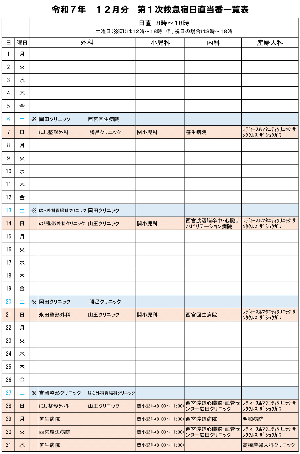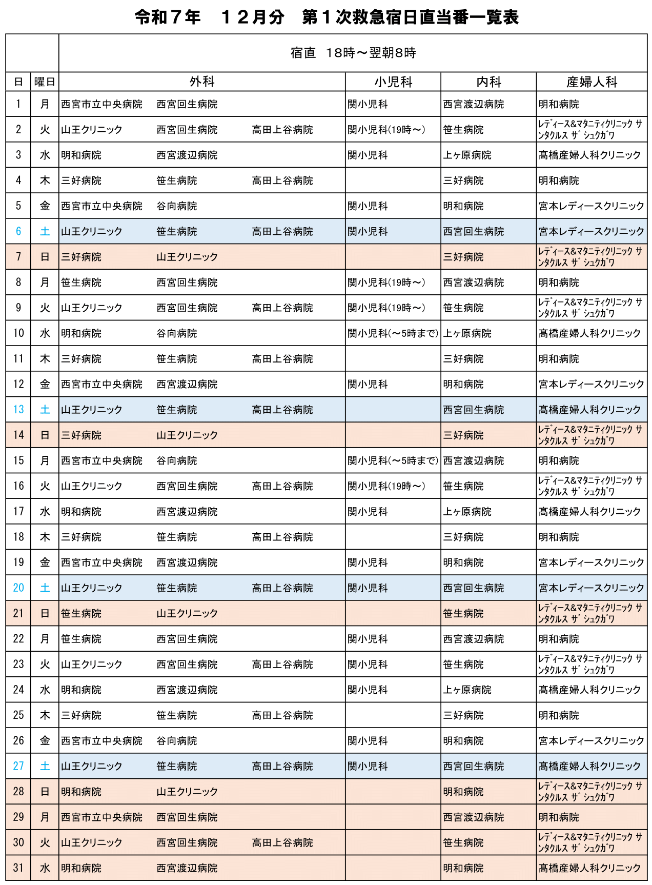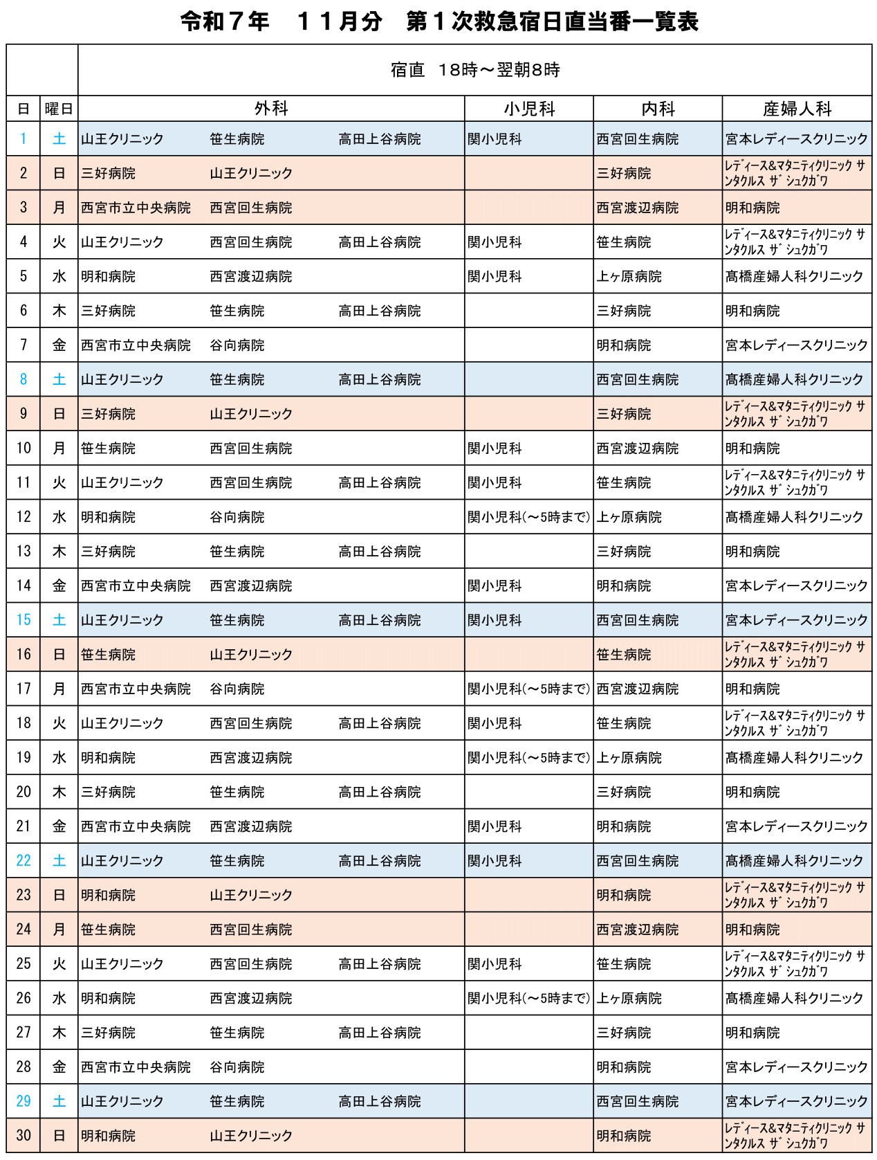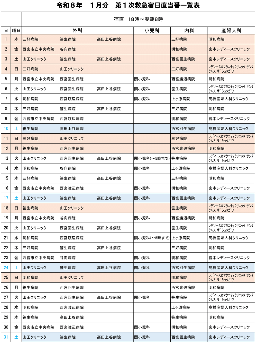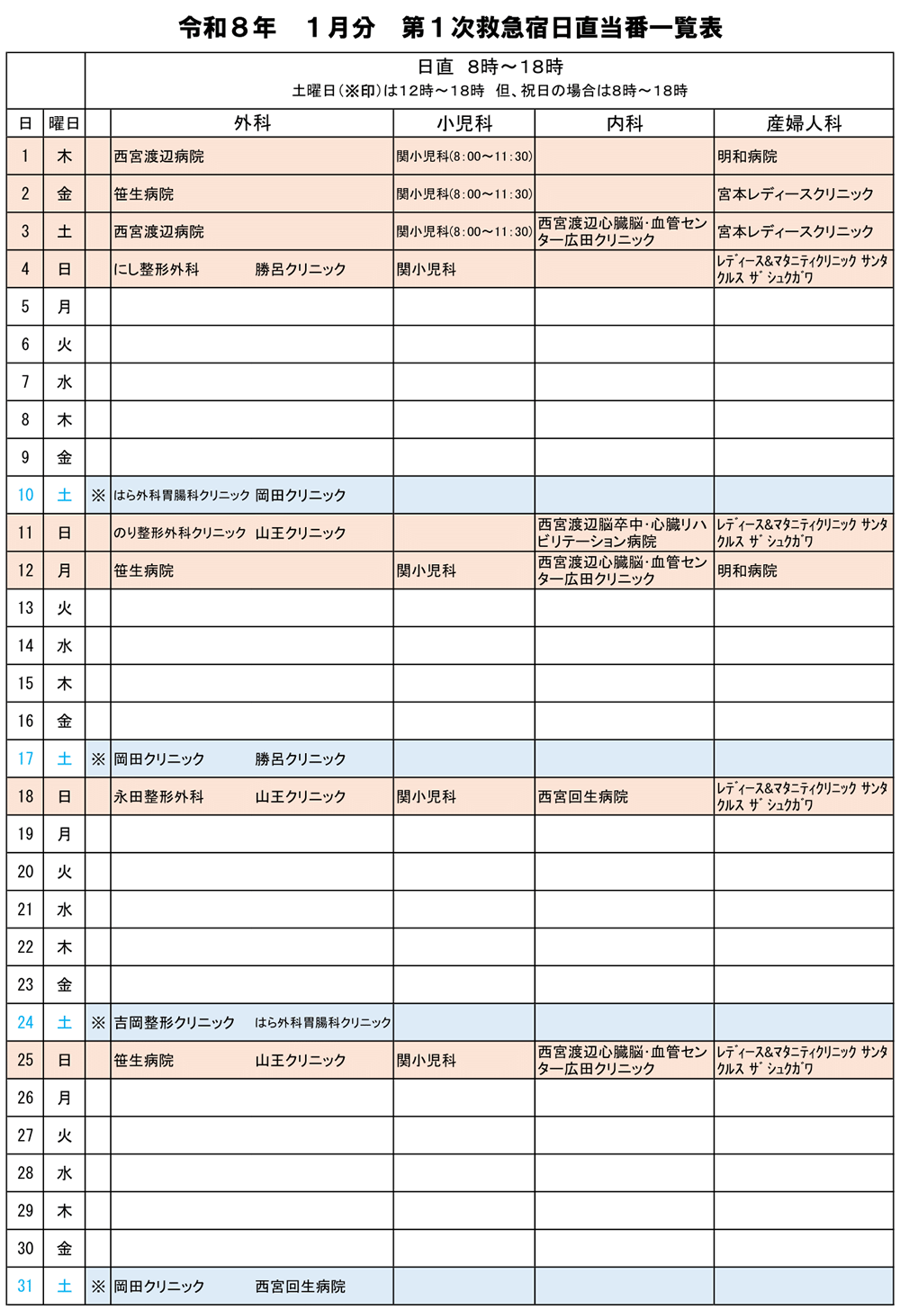 休日・夜間の医療機関名簿(1次救急)はこちら。